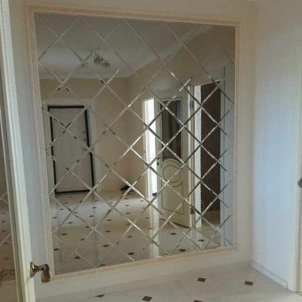 Использована зеркальная квадратная плитка с фацетом.